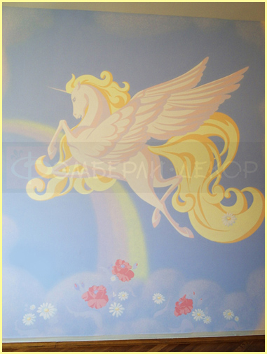 ОПИСАНИЕ: Роспись детской комнаты для девочки 7 лет выполнена итальянскими акриловыми красками на стене и на поверхности многоуровневого потолка из гипсокартона. Главным сюжетом росписи является сказочный конь, который изображён в радужной атмосфере цветов и бабочек. Для сохранения уникальности каждой работы 100% повтор не выполняется. УСЛОВИЯ РАБОТЫ: ознакомиться СТАТУС: На заказ СТОИМОСТЬ: узнать вернуться в раздел Заказать |
